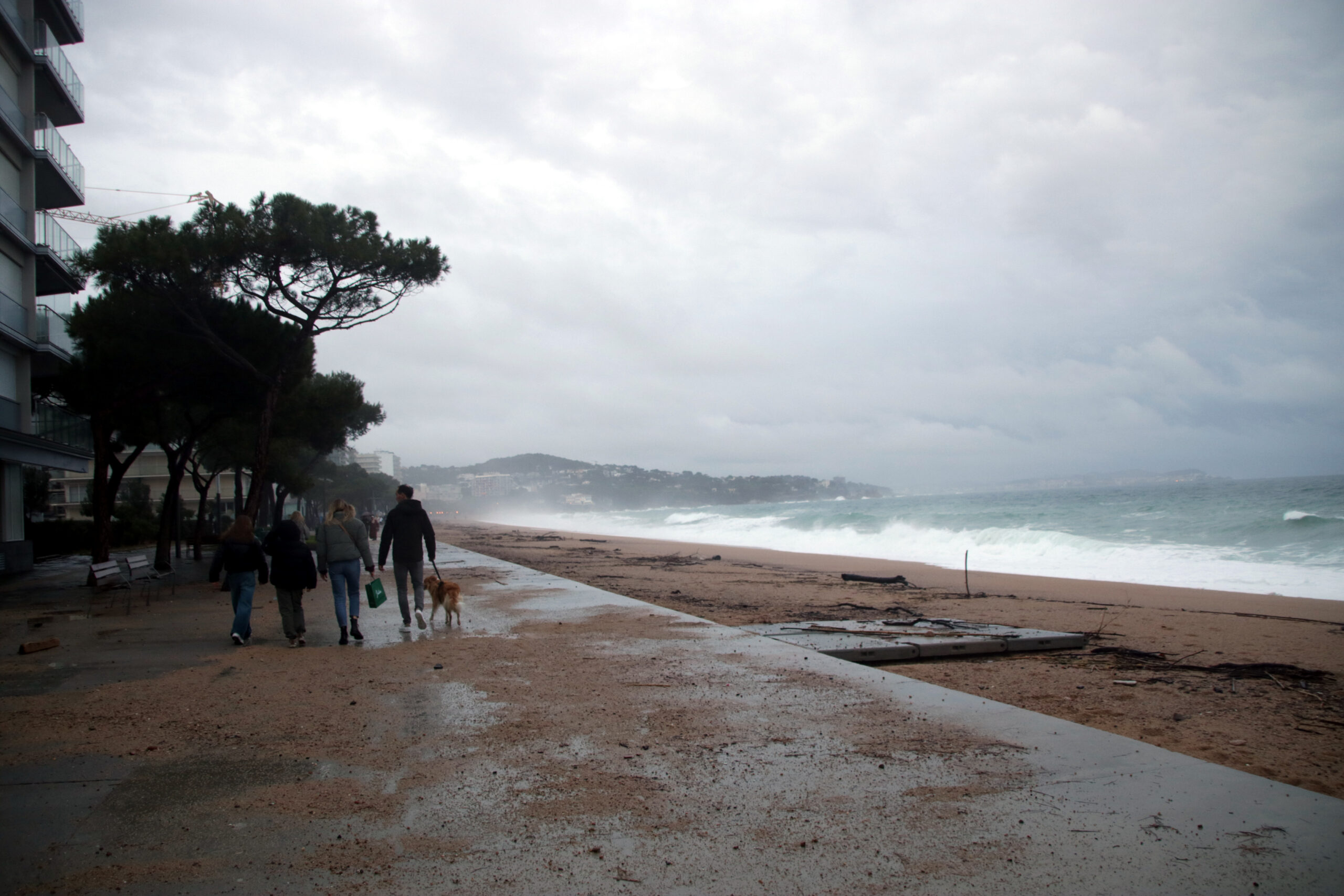 La llevantada també ha arrossegat una balena fins a Platja d’Aro, on ha quedat varada a la sorra. L’animal, mort, es trobava surant mar endins però ha acabat arribant fins a la platja. Aquesta localitat empordanesa és una de les moltes on la tempesta i el fort onatge ha malmès la línia de la costa.