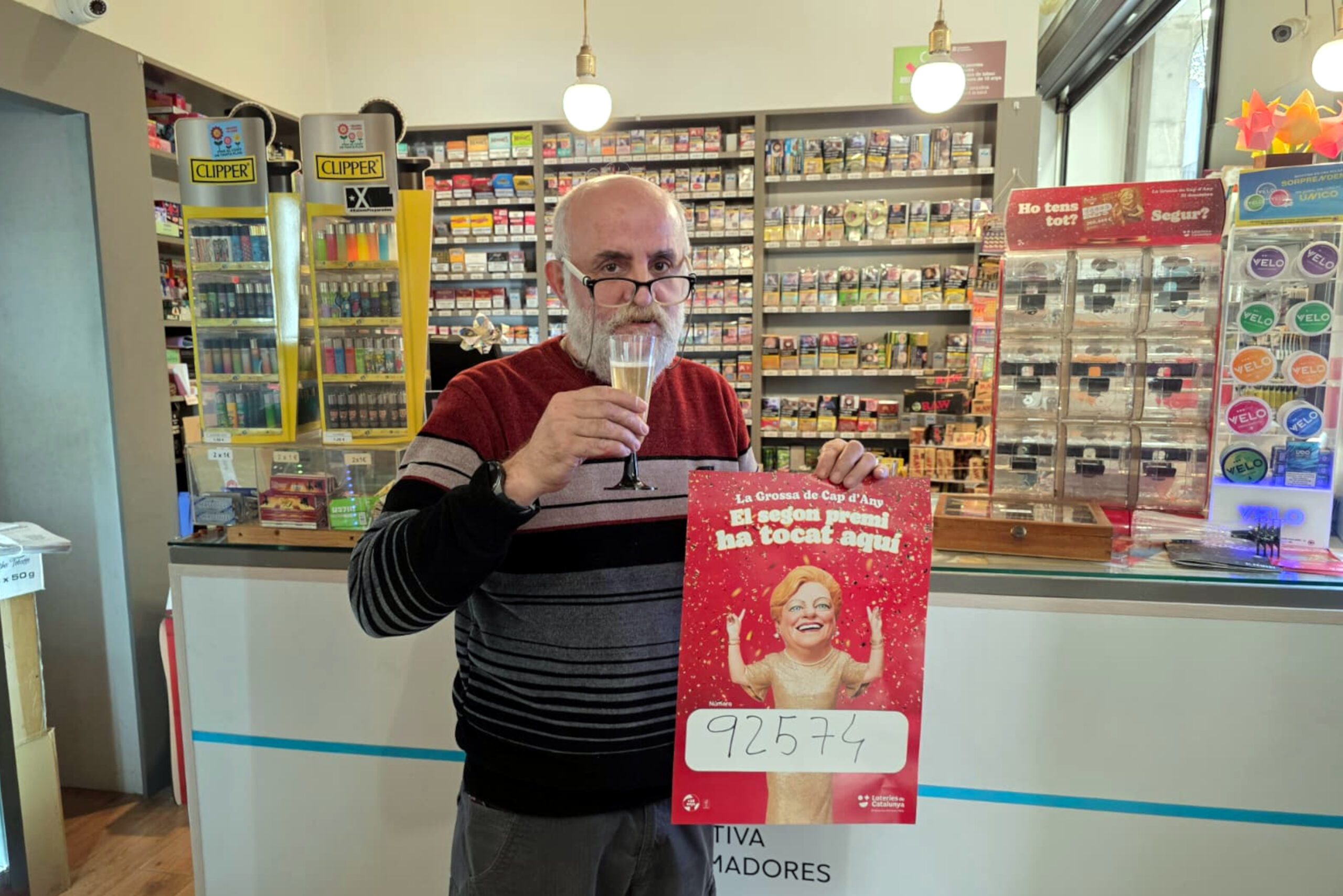 ACN Girona – Sorpresa i emoció a Girona després de donar gairebé 2 milions d’euros del segon premi de la Grossa de Cap d’Any. L’Estanc Ciutadans, situat al Barri Vell, ha venut 30 bitllets del número 92574. Cada dècim està dotat amb 65.000 euros, cosa que suposa 6.500 per euro jugat. El propietari de l’establiment, Àngel Almazán, ha apuntat que estava fent les últimes compres pel sopar, quan l’han trucat per donar-li la bona nova. “He vist que havia tocat a Girona i he pensat: Ostres quina sort el que l’hagi donat, amb la il·lusió que a mi em feia! Però just m’ha trucat el comercial per dir-m’ho i gairebé em poso a plorar”, ha admès visiblement emocionat. Almazán també va vendre bitllets guanyadors de la Grossa de Sant Jordi del 2024.